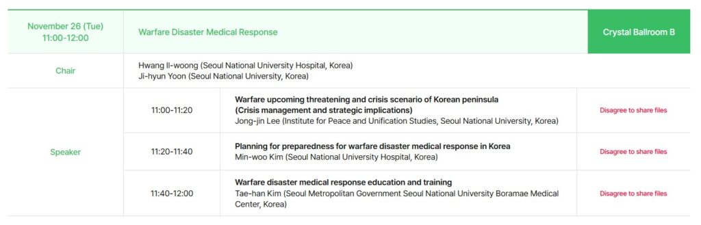 2024. 11. 26. Presentation “Warfare and Threat Scenarios on the Korean Peninsula: Crisis Management and Strategic Implications [in English].” The 15th Asia Pacific Conference on Disaster Medicine 2024.